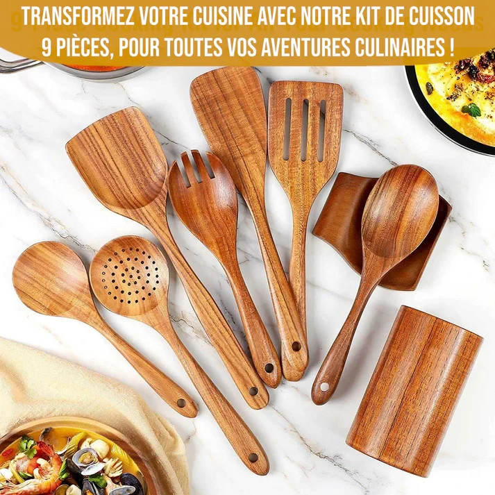 Ce lot complet d'ustensiles de cuisine est fabriqué à partir de bois naturel, un matériau renouvelable et durable. Chaque pièce a été conçue pour répondre à un besoin culinaire spécifique, du retournement de crêpes à la préparation de sauces. Grâce à leur composition en bois, ces ustensiles n'égratignent pas vos poêles et casseroles, préservant ainsi la longévité de vos surfaces de cuisson.