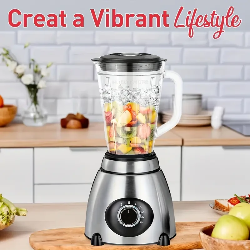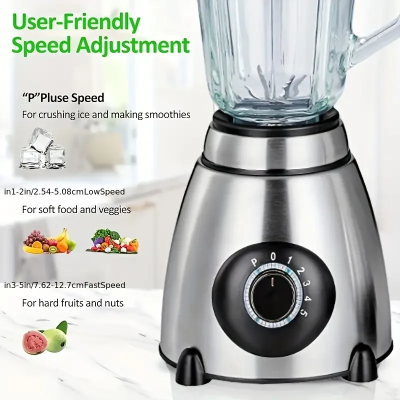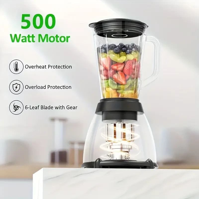 SENBOWE Presse-agrumes en acier inoxydable, blender, moteur 500W, 6 lames avec protection contre les surchauffes/surcharges, prise standard européenne, contrôle par bouton, 220-240V, matériau ABS, sans batterie - Traitement de jus de fruits pour usage domestique